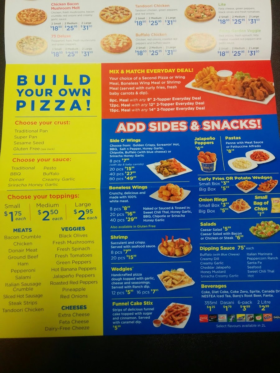 Welcome to Pizza 73 - 6404 Bowness Rd NW, a cherished spot in Calgary renowned for its delicious pizzas and exceptional customer service. The menu is impressively diverse, offering alternative crusts such as Cauliflower and Keto options, catering to various dietary preferences. Indulge in their signature pizzas, with options like Plant-based Pepperoni and the classic crowd-pleaser, featuring generous toppings and perfectly melted cheese.